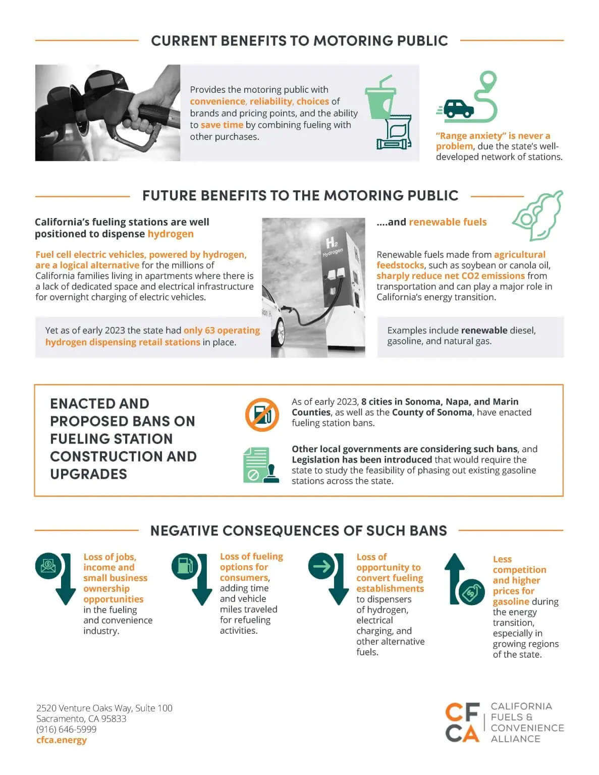 Given the emerging movement to ban new or upgraded fueling establishments in California, this report has been commissioned by the California Fuels and Convenience Alliance to analyze (1) the economic contributions of the Fueling and Convenience industry, and (2) the economic impacts that adoption of a statewide ban - or widespread adoption of local bans - would have on the California economy